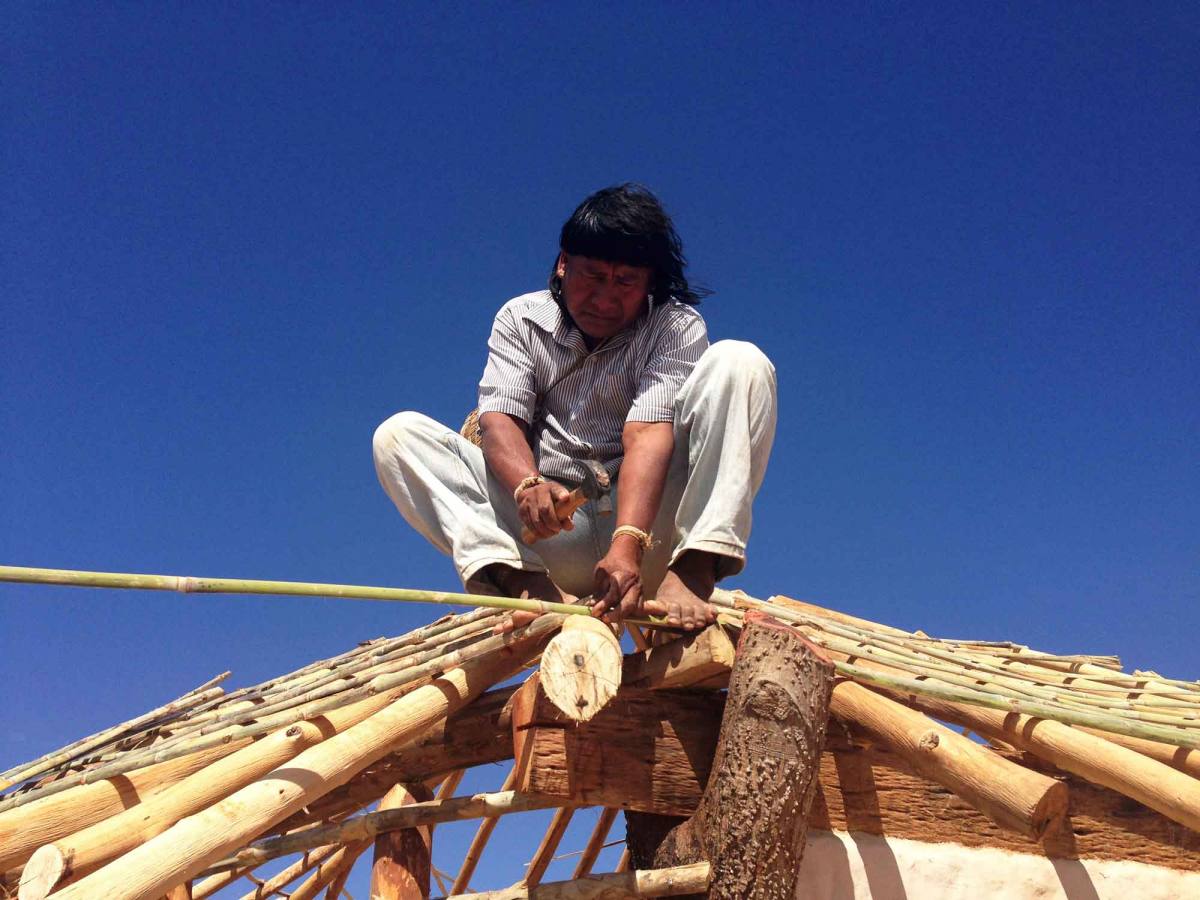 Al inicio los A´uwẽ mostraron cierto desinterés en relación a la construcción. Algunos pasaban, veían, pero luego regresaban a sus casas. Para ellos no estaba claro cuál sería el proyecto. Su participación en la obra solo ocurrió, de hecho, cuando representamos gráficamente el símbolo de los dos clanes (Öwawẽ y Poreza'ono) en las paredes de la entrada de la casa.