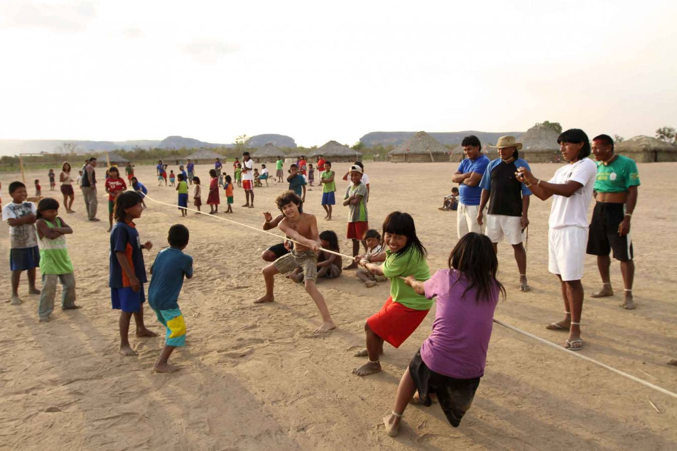 Hubo juego de fútbol, cable de guerra, almuerzo colectivo y pintura corporal con carbón y urucum.