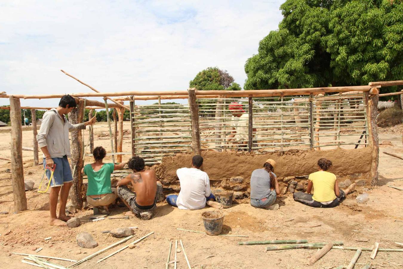 Después de una reunión con el colectivo, quedo decidido que el formato de la casa sería elíptico y que utilizaríamos las mismas materias primas que en Waró Ripá. La única diferente era la palma de buriti para colocar en las paredes laterales. El techo continuaría siendo responsabilidad de los A’uwẽ.