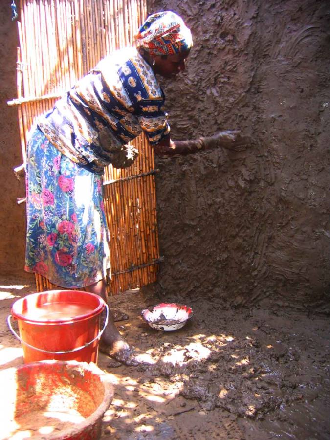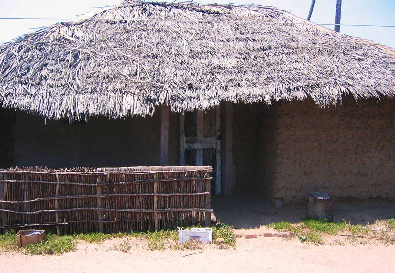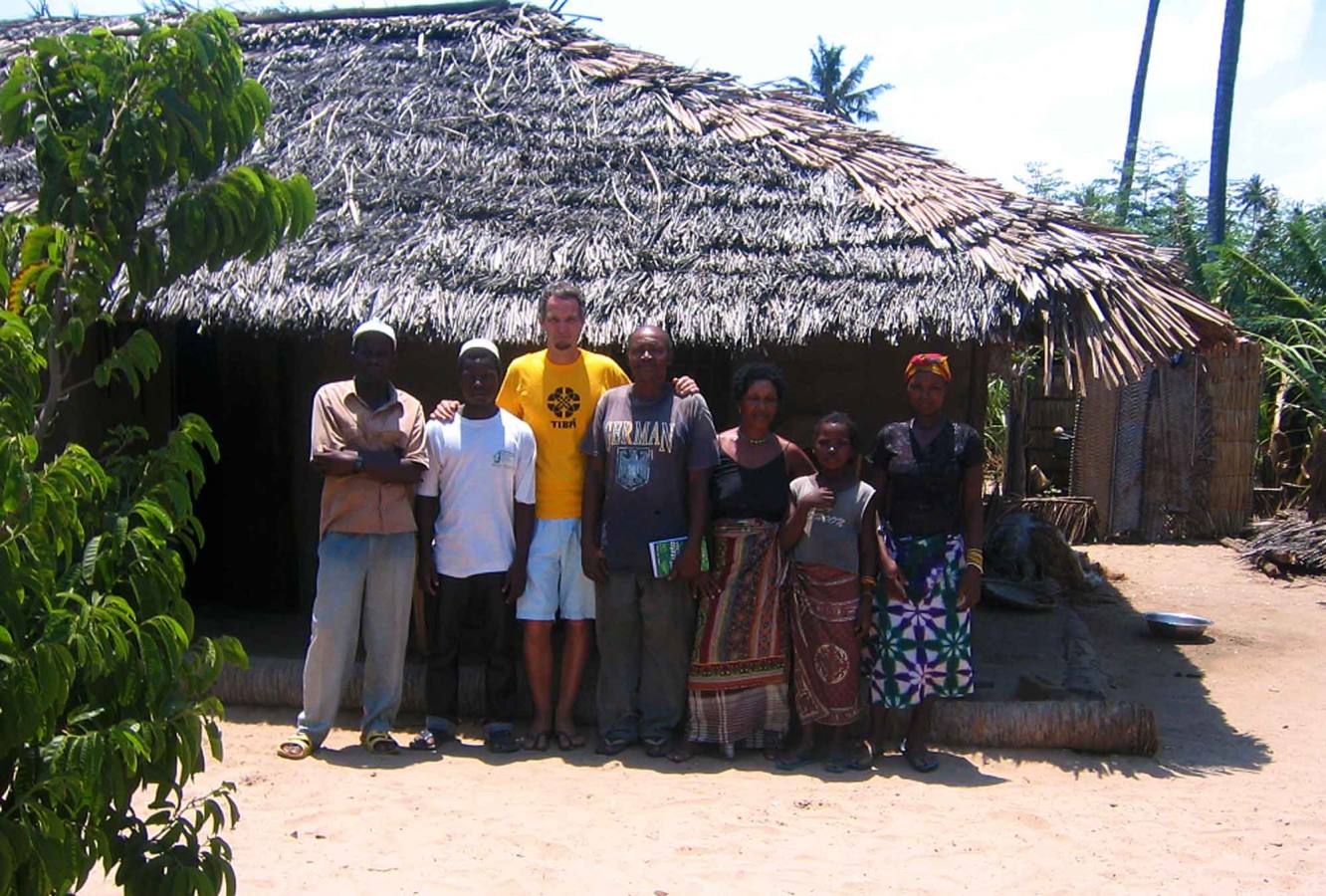 ZAMBEZIA, MOZAMBIQUE, El Alcalde y Subsecretario de Supinho, Peter Van Lengen, el Mestre Paulinho bio-arquitecto urbanista, su familia y su hogar construido en 20 días.